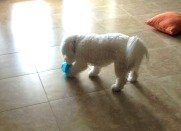 BeginningsAs with every ending, there's also new beginnings. This month we were introduced to the most adorable Coton puppies and wish them a long and healthy, happy life. Many of you have met Spanky who is a little Coton with a big personality. Stop by and meet his adorable new little brother, Gleason. We also met darling little playful Max. Luc's Favorite New ToyLike many of you, I can't count how many toys I've bought Luc over the years. Most of them end up in the trash or donated to the local humane society. But recently I found a toy that is perfect for my crazy smart Coton and it was less than $10. This toy called IQ Treat Ball is for those of you who have dogs like Luc who are just too smart for their own good, get bored easily, and are highly motivated by food. I have tried so many of the interactive dog toys to keep Luc entertained and out of trouble and usually he can figure them out within 2 minutes and then then game's over. The IQ Treat Ball keeps Luc busy for sometimes up to an hour - he'd probably play with it all day if I kept adding treats. It's the same concept as the Kong toys where you hide treats inside so your dog has to try to get the treats out. For some reason, Luc likes this plastic toy better than the rubber Kongs (maybe plastic tastes better than rubber or maybe he likes the noise it makes as he rolls it on the floor). I like that it's cheap, durable, and easy to clean. I also like that you can adjust the difficulty level by adjusting the size of the hole where the treats come out.