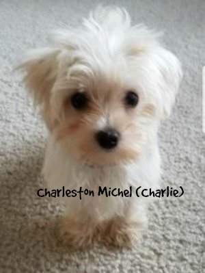 Charleston Michel will be a year old on April 10th. His mom, Linda, sent this: "My name is Charleston Michel and my family calls me Charlie! I was the runt of my litter. My brother is over twice my size! At 5 months old I weigh 3.3 pounds. But that doesn't stop me from being rambunctious, funny, bright, adorable, charming and a little bit ornery! I can be very fierce and growl and bark when I see another little white dog outside of our door (aka reflection)! I love going to visit my grandpa at his assisted living so the residents can make a fuss over me! I love to sniff and sniff and sniff and sniff! I love to give kisses (aka licks). I also love to chew and chew and chew and chew. If I see socks, I'll grab them and run FAST!"
