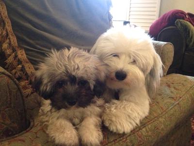 Woolsey and Moby are pure bred Cotons and half brothers. Woolsey is 3 and Moby is 5 months. I love Moby's unique coloring.